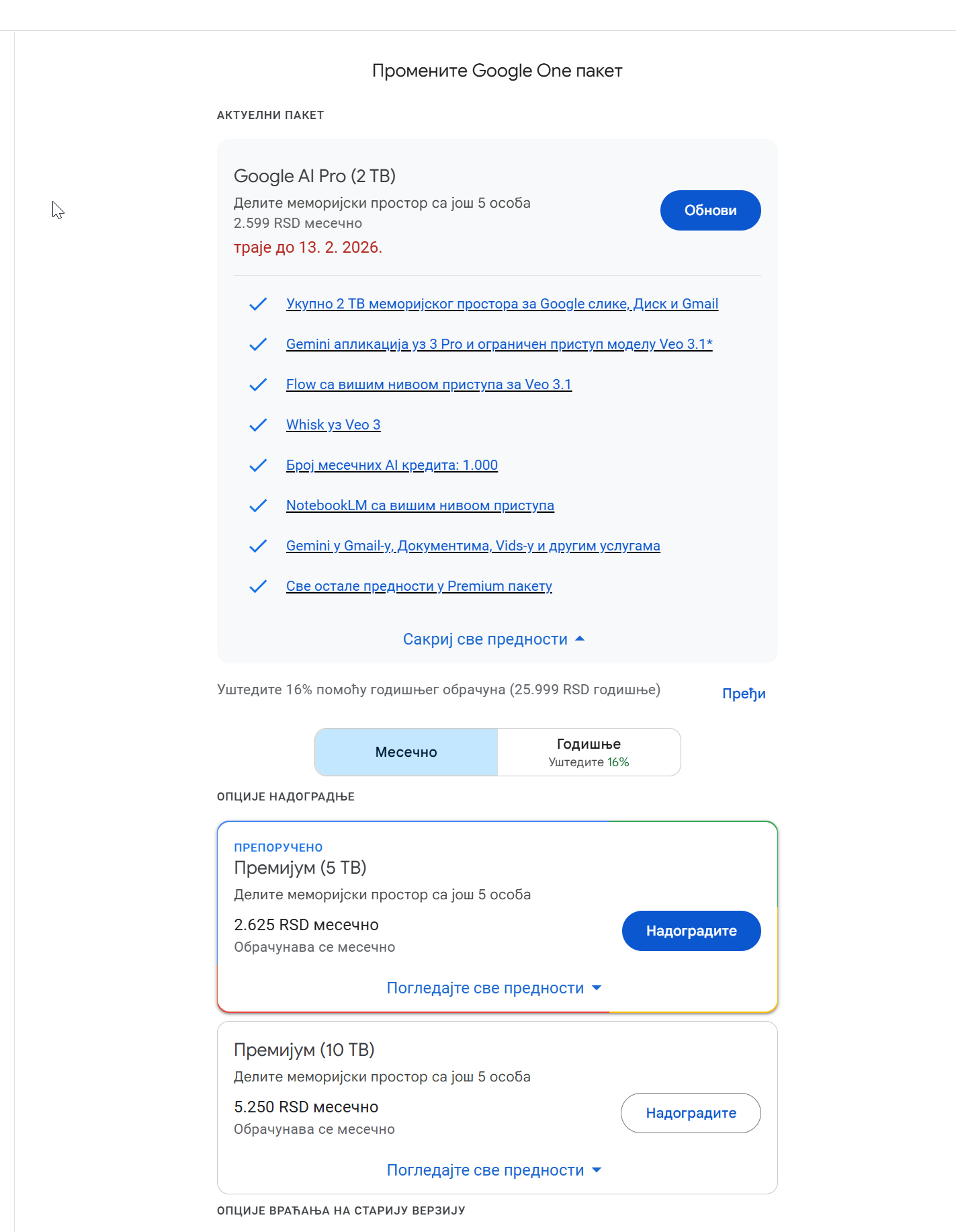 Evo ga screenshot. U pitanju je PRO pretplata od 2599din.![]()